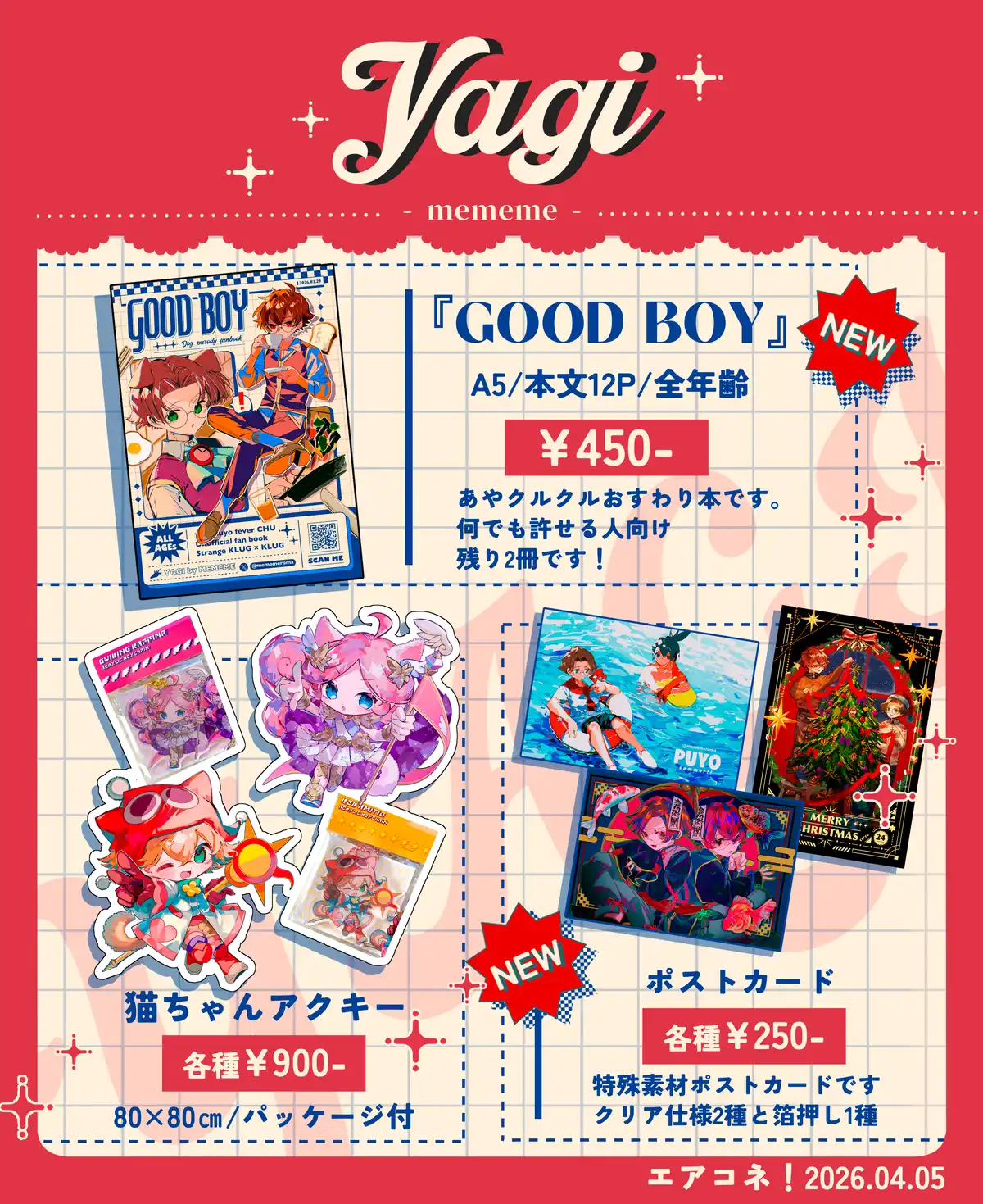 サークル名YAGIペンネームめめめタグあやクルクルシグクルアミティラフィーナリンクサークル紹介クルクル中心オールキャラサークルです📕👓BOOTHにてぷよコネで出した頒布物の事後通販を行っています。📕👓が好きで好きで…色々と更新してますので各種SNS覗いてみてください、語れる人募集してます🙏宜しくお願いします❤️💜✕close✕close✕close✕close通販リンクBOOTH