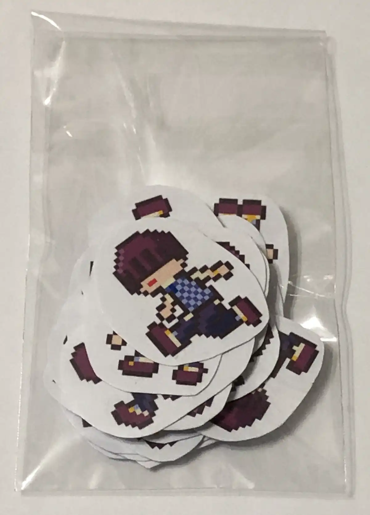 ドットのアミティ・シグ・まぐろのアクリルキーホルダーと缶バッチとフレークシールを商品として出そうと思います。フレークシールに関しては手作業なので切り方がすべてまばらで画像の通りではないのでご了承を。